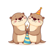 Decorate your space with this funny poster of two otters holding hands near a party hat. A joyful and festive funny gift for any room.